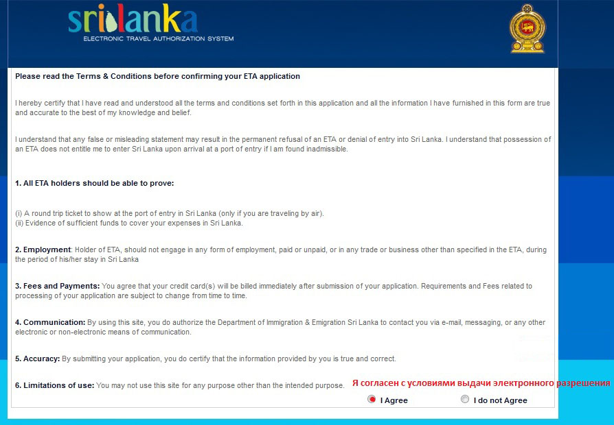 Увага: після отримання ETA рекомендується мати при собі копію повідомлення про підтвердження видачі візи для пред’явлення на паспортному контролі в аеропортах Коломбо або Маттала