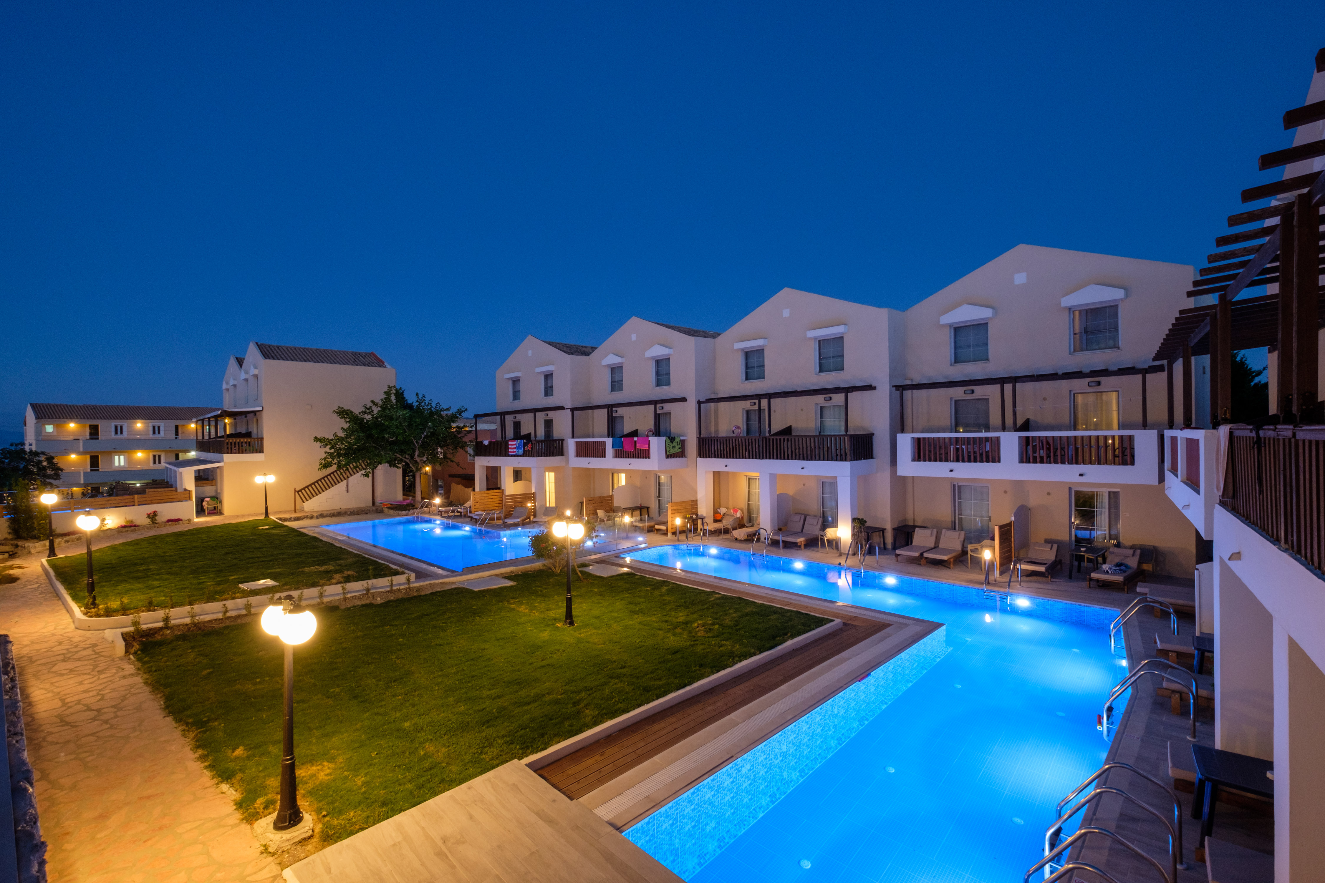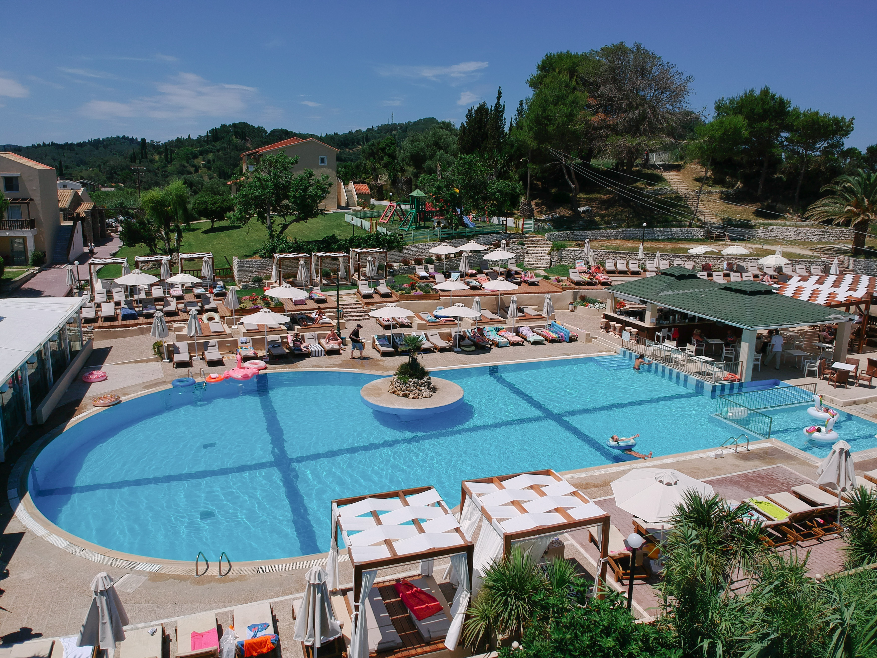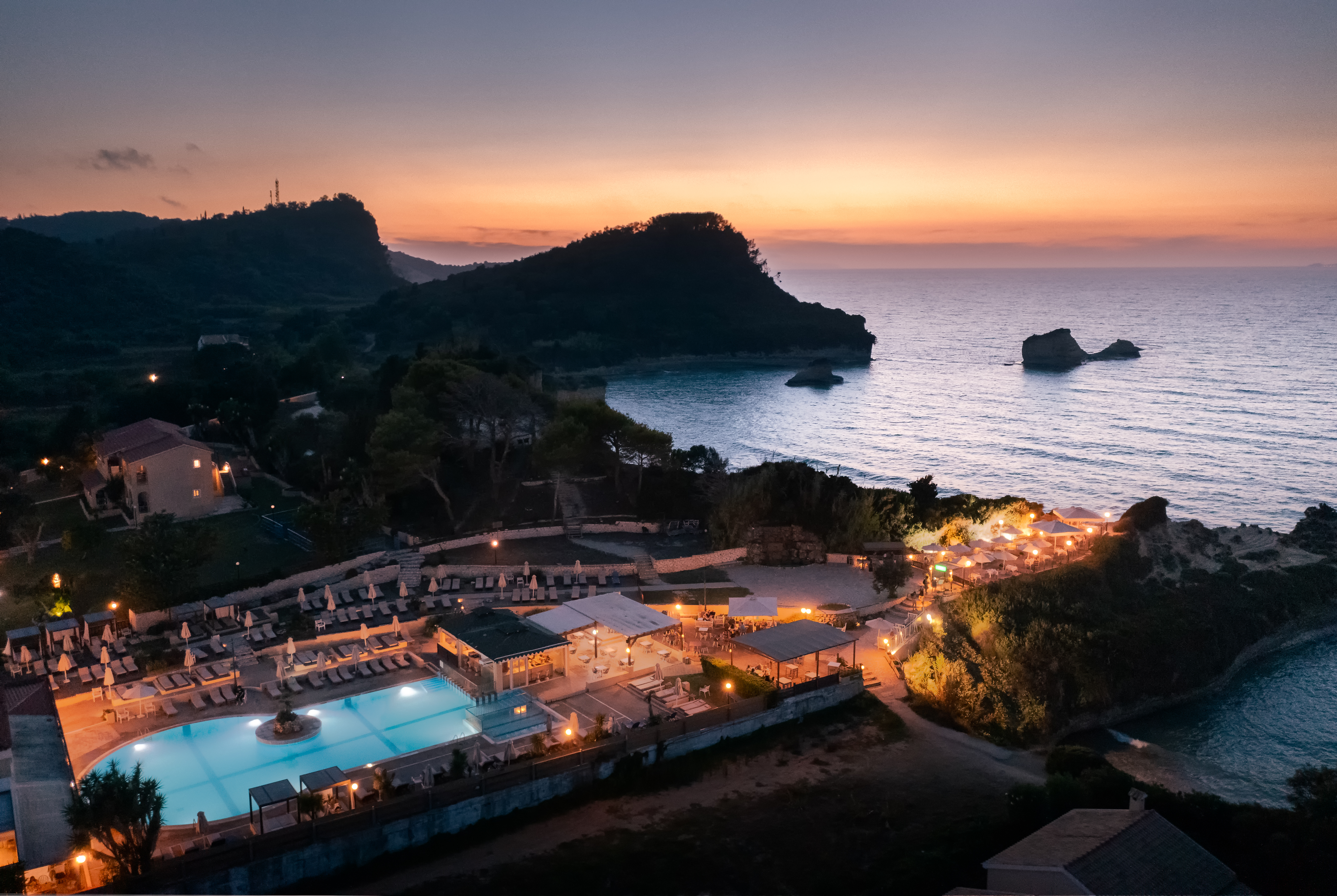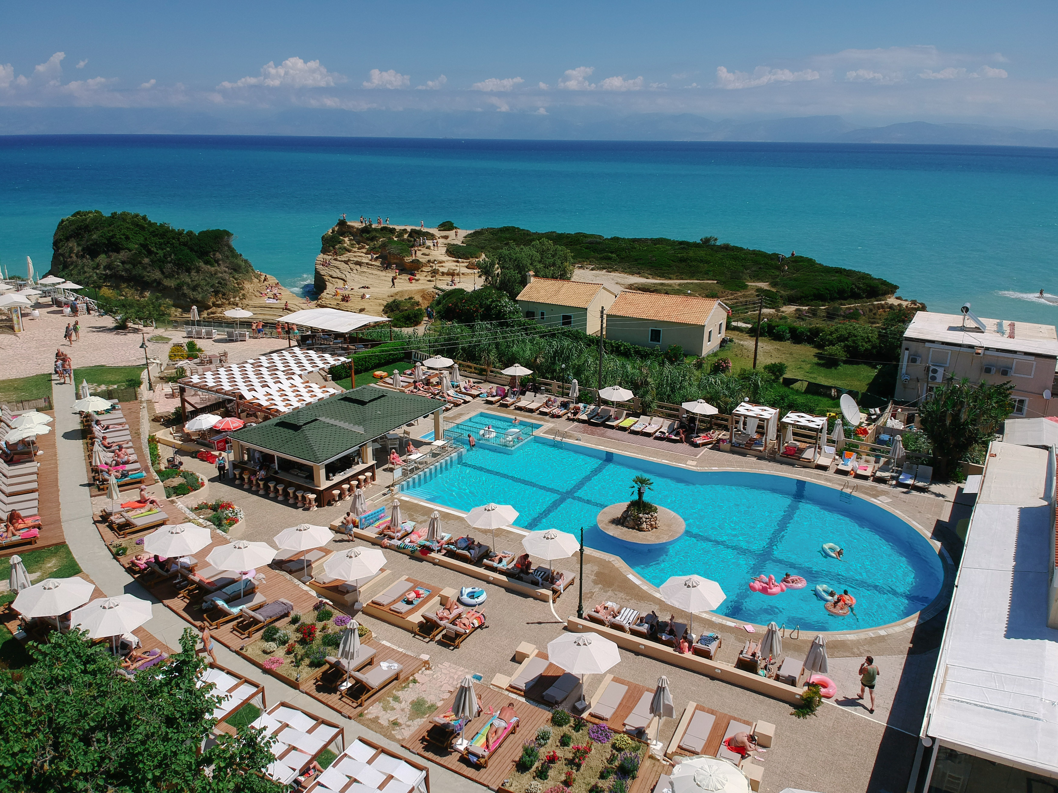 Akron Seascape Resort is a 4-star hotel situated on a breathtaking setting, high above the sea, facing the famous Canal D' Amour Beach. The hotel provides a quality all-inclusive holidays in Corfu and is an ideal place for relaxing holidays, for both couples and families. It is stretched across a land of 15, 000 m2 where the rooms and suites are located, as well as the main pool with its pool bar, the shared pools, the three restaurants, the spa center, the kids' club and the play area. Its structure is based on Corfu's traditional architecture.
