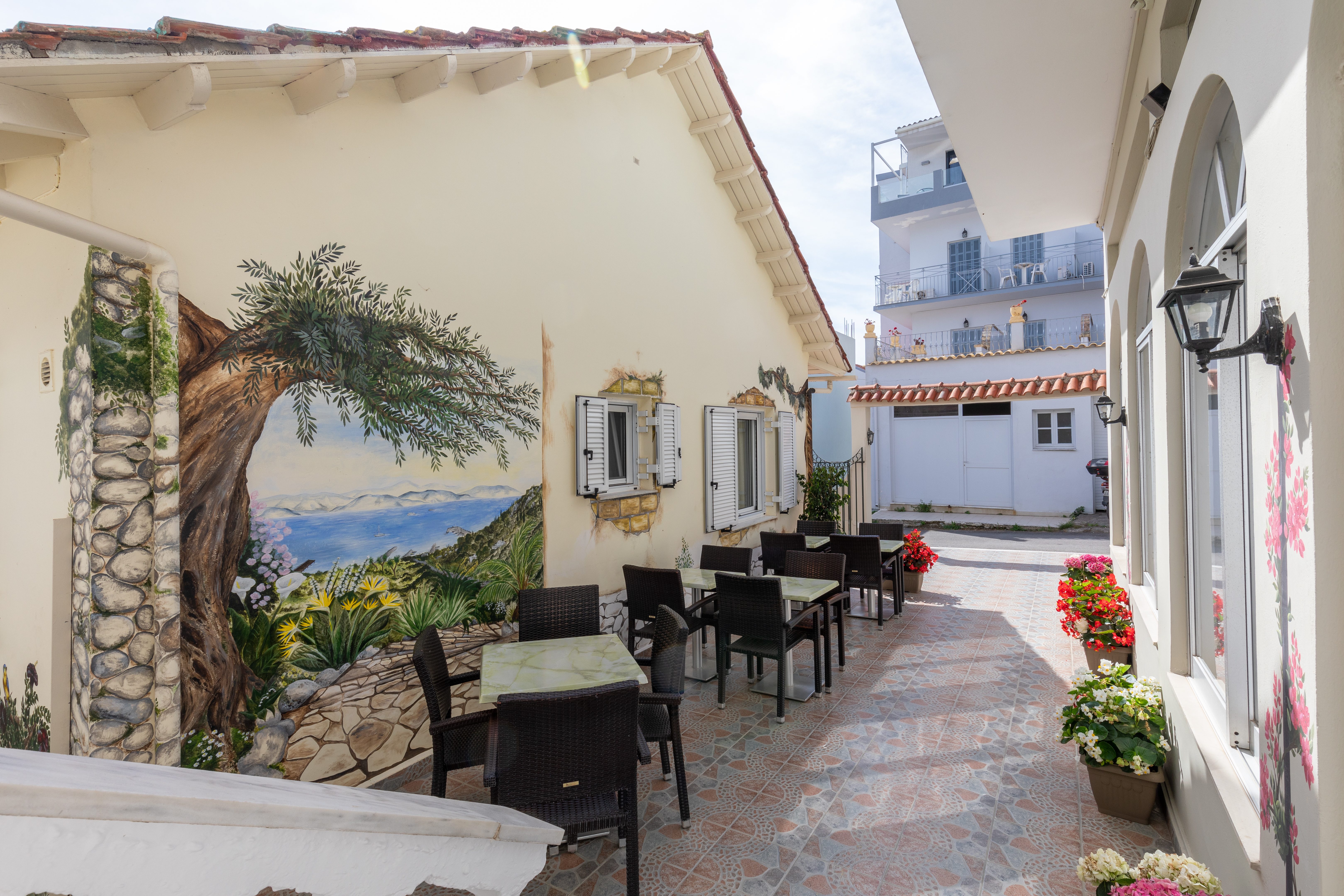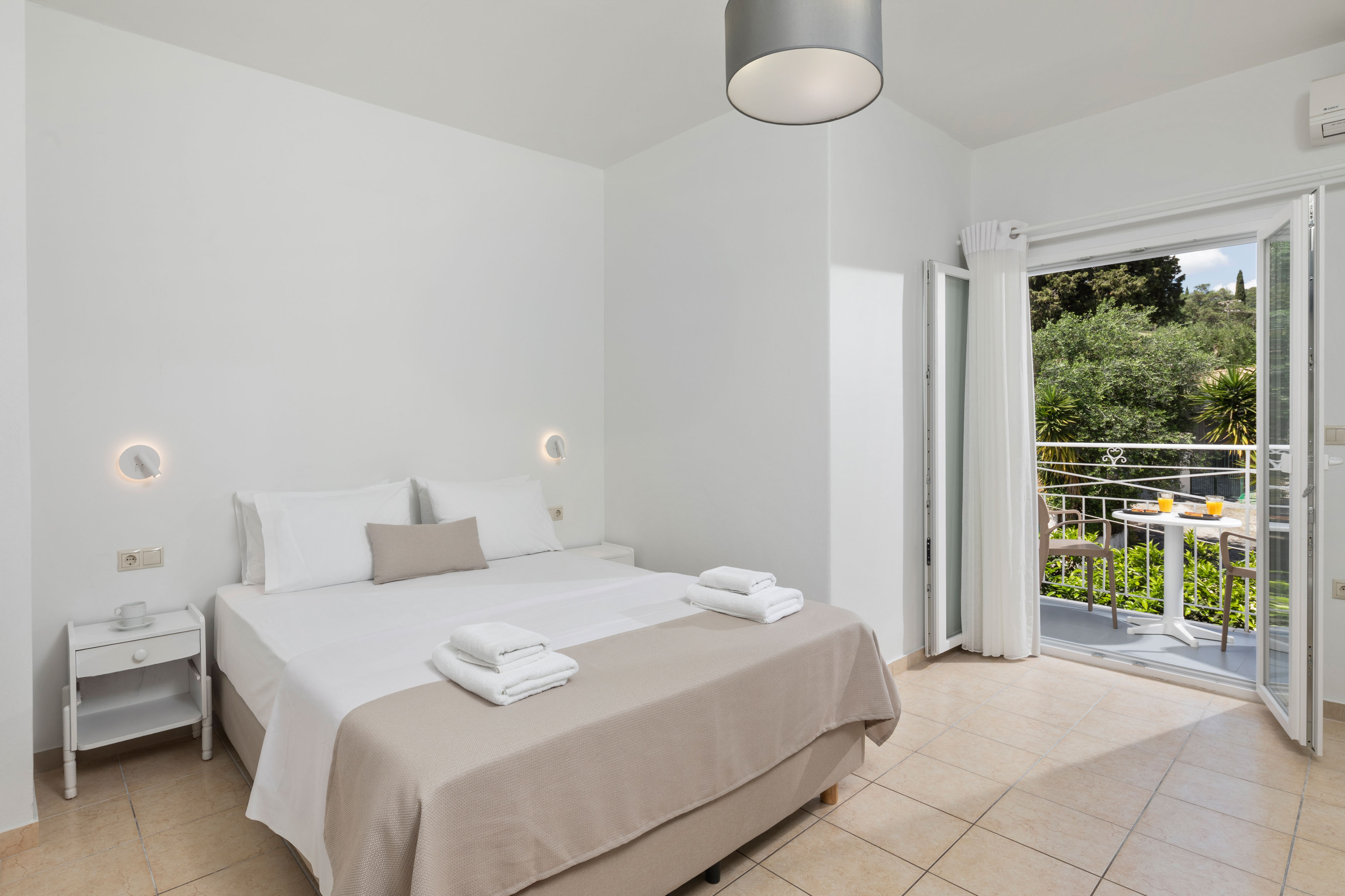 Nestled in the tranquil coastal area of Benitses, a short bus ride from Corfu's historic Old Town, Bella Vista Hotel & Studios offers family-friendly accommodations. The property comprises a standard hotel and a nearby apartment complex, with four buildings situated within 50-100 meters of each other. Recently renovated rooms feature charming, contemporary designs in calming colors with simple decor. Each comfortably furnished room provides essential amenities, including complimentary air conditioning and Wi-Fi. Guests can choose from a variety of room types to suit their needs. All rooms are tastefully decorated and equipped with free air conditioning, Wi-Fi, a safe, satellite TV, a mini-fridge, tea and coffee making facilities, a private en-suite bathroom with shower and toiletries, and a balcony or patio. Studio rooms also include a kitchenette at no extra charge. Rooms range from 18 to 22 square meters, excluding balcony or patio space. Start your day with Bella Vista's delicious homemade Greek buffet breakfast. Enjoy freshly baked local breads and cakes (made with fruit from the hotel's garden), traditional Greek pies, fresh fruit salad, a variety of cereals, sliced ham and cheese, Greek yogurt, chilled orange juice, and hot tea or coffee.