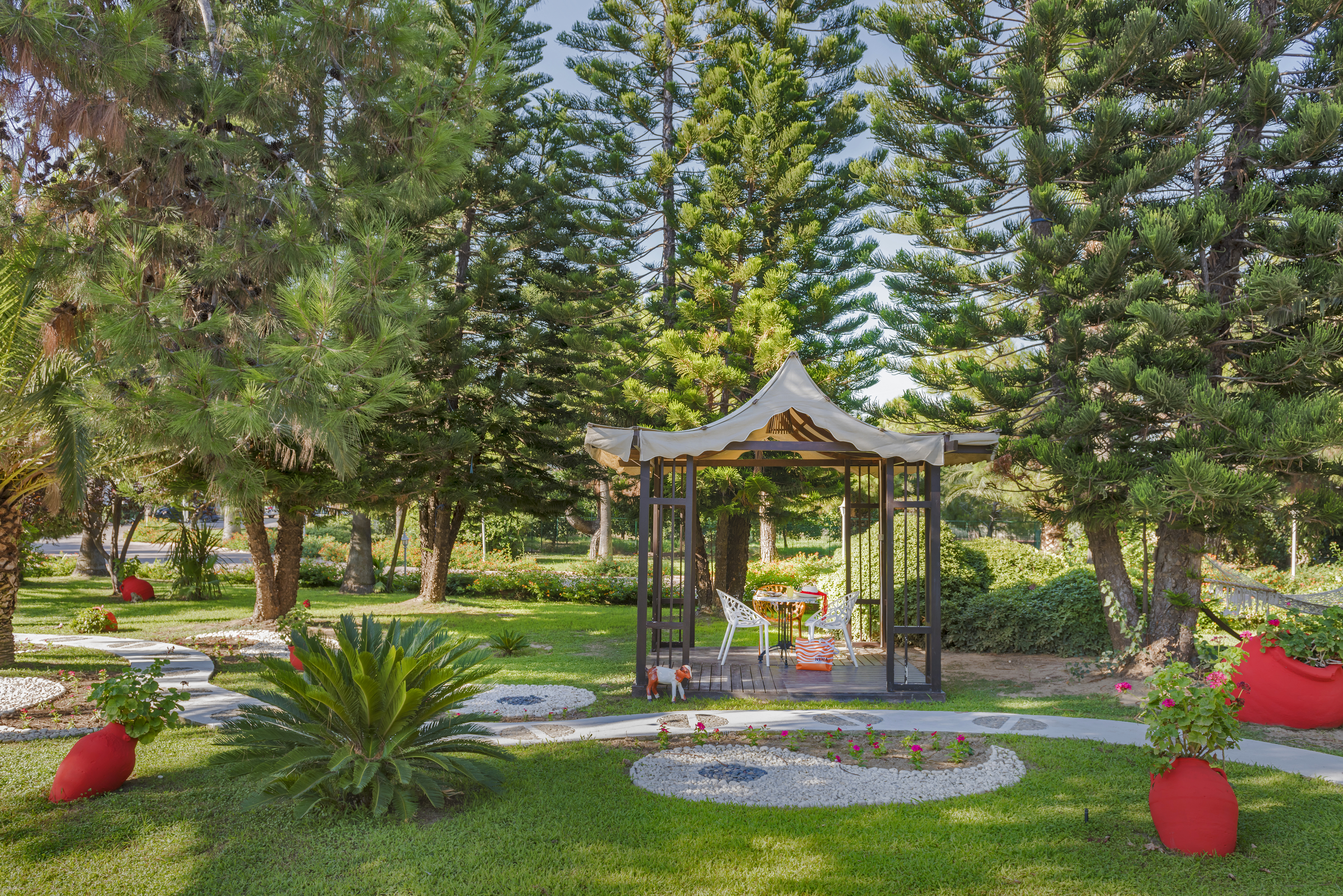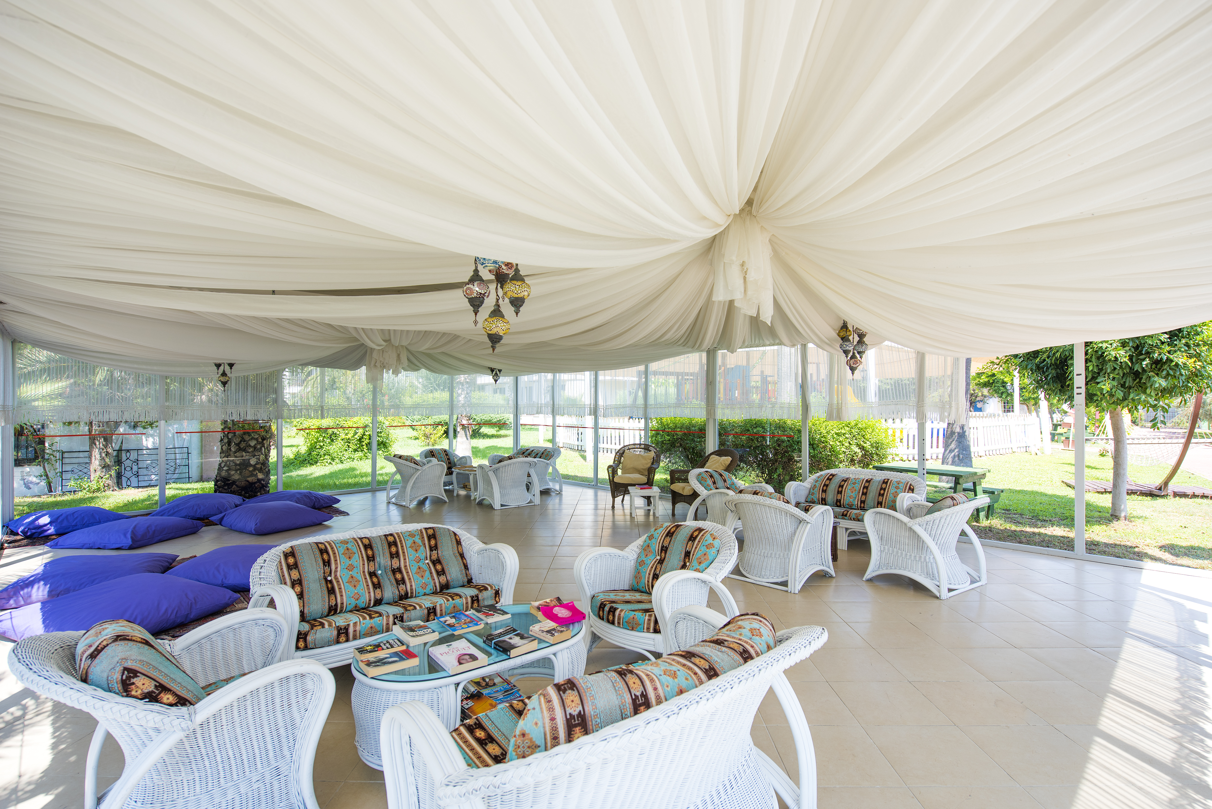 This family-friendly beach hotel is located just 1 km from the centre of the resort of Kizilagac. It is around 15 km from Side, approximately 12 km from Manavgat and roughly 80 km away from Antalya Airport. The holiday village is built on an area spanning 100 acres and offers guests a peaceful and happy holiday. The hotel establishment comprises a total of 590 rooms. The air-conditioned hotel welcomes guests into a lobby with 24-hour reception and check-out services, a hotel safe and currency exchange facilities. Further amenities include a hairdressing salon, a café, a bar and a restaurant. Conference facilities and Internet access are also available. The hotel has rooms housed in the main building as well as bungalow-type rooms designed in an Ottoman architectural style. Each room comes fully-equipped as standard including a satellite TV, a minibar and a balcony or a terrace.