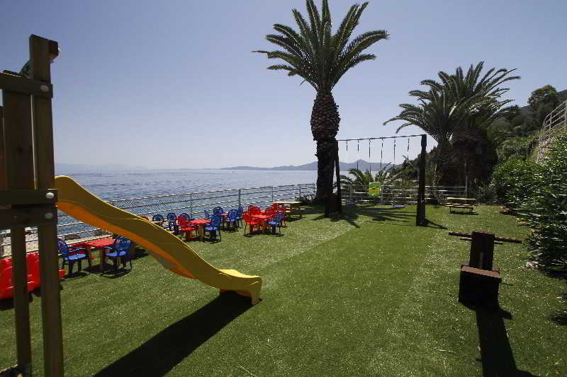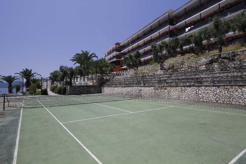 To Corfu Maris Bellos Hotel is located 3 km from the picturesque village of Benitses , with a wide variety of tavernas clustered around the marina . Guests can visit the villages of Moraitika and Messonghi which are spaced 5km . By bus you can easily reach the capital of the island of Corfu which is 12 km from the hotel . All rooms have large windows , air conditioning and a furnished balcony with sea views . Extras - satellite TV , telephone , refrigerator , hair dryer and free Wi-Fi, Personal safe. Some rooms have a seating area. The breakfast 'buffet' is served daily in the breakfast room overlooking the sea . The pool bar serves refreshing cocktail and light snacks. The tavern serves fresh fish and traditional Greek cuisine . The beach and the pool has free sunbeds and umbrellas for hotel guests. The Corfu Maris Bellos Hotel offers tennis courts, table tennis.