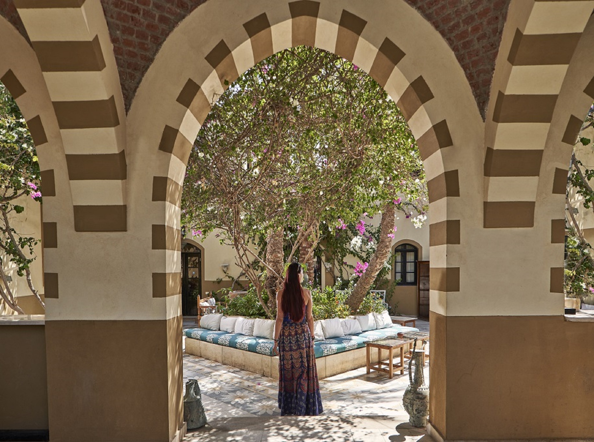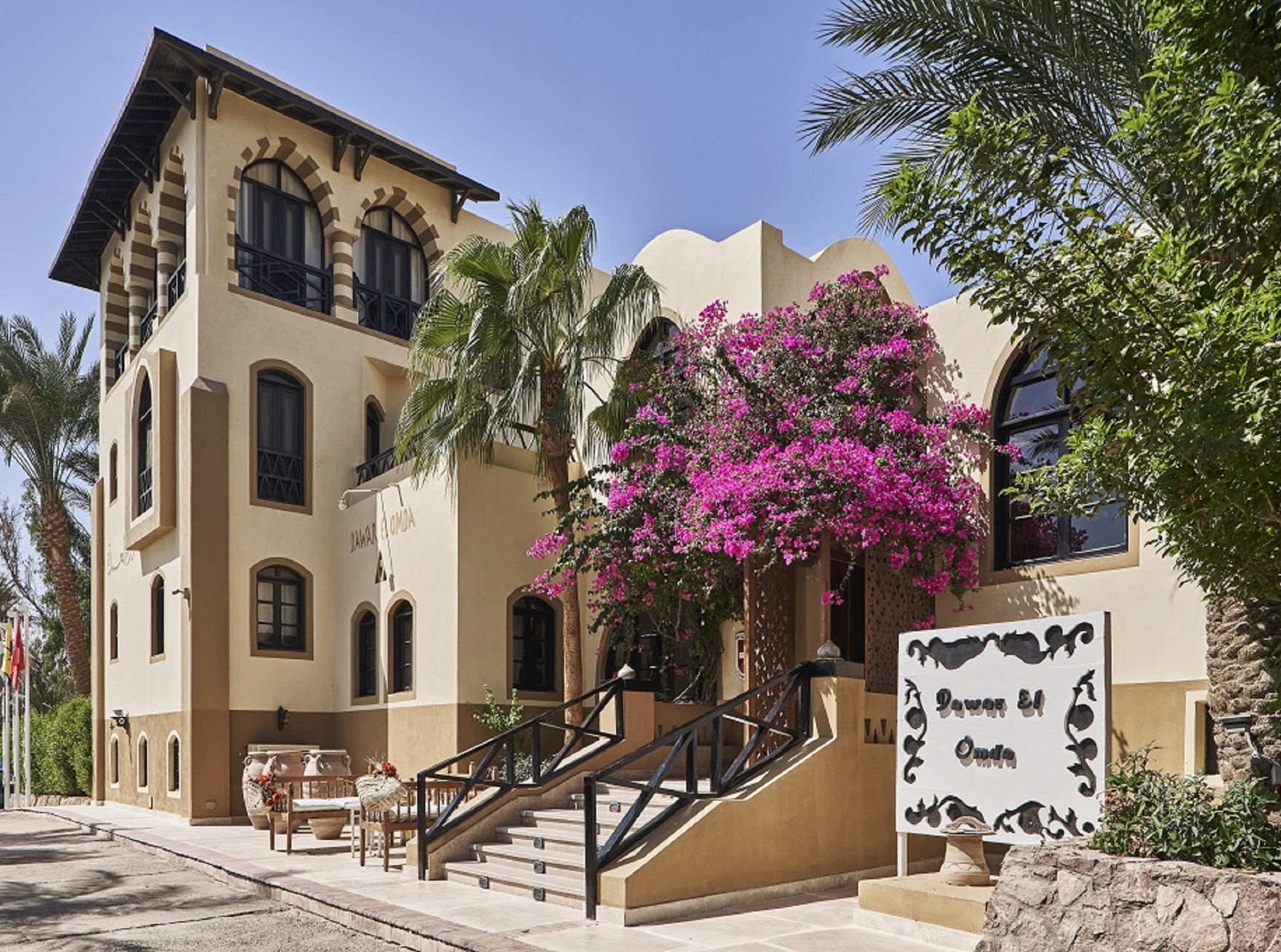 Nestled in the heart of El Gouna, just north of Hurghada, Hotel Dawar El Omda offers a unique blend of Egyptian charm and modern comfort. Built partially over a lagoon, this intimate boutique hotel evokes the style of an Upper Egyptian mayor's mansion, featuring authentic architecture and superb interior design. The hotel has earned a Green Star certificate for its commitment to environmental sustainability. Guests can enjoy a private pool, complimentary boat shuttle access to Zeytouna Island with its Red Sea beach and amenities, and access to El Gouna's world-class spa, USPGA golf course, and various water sports. The 32 standard rooms, along with two junior suites and a honeymoon suite, offer Wi-Fi (for a fee), scented candles, and a pillow menu. Many rooms feature balconies or terraces overlooking the pool or garden. For a truly luxurious experience, the 34 deluxe rooms boast prime locations facing the Red Sea, with some offering direct lagoon access from private balconies.