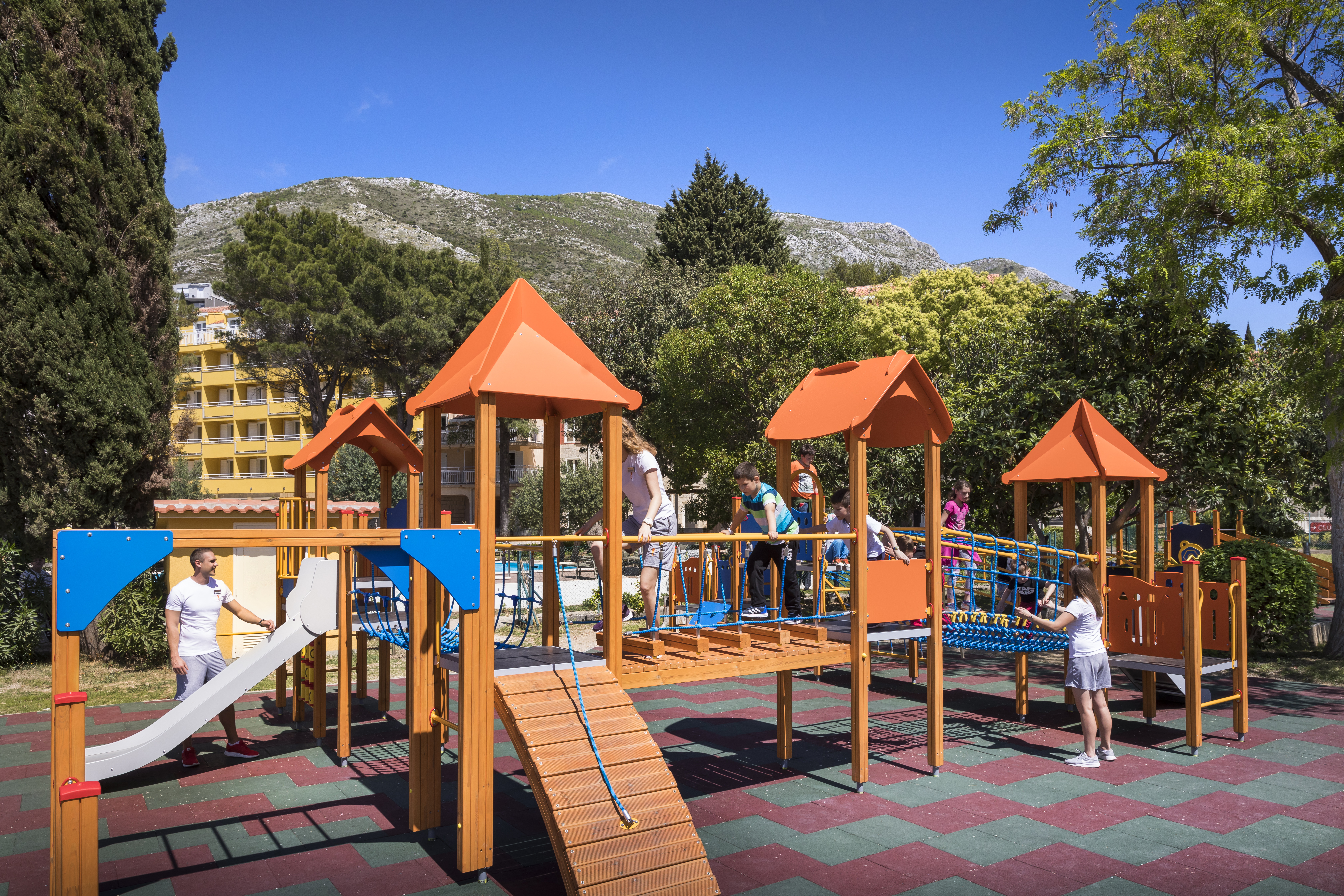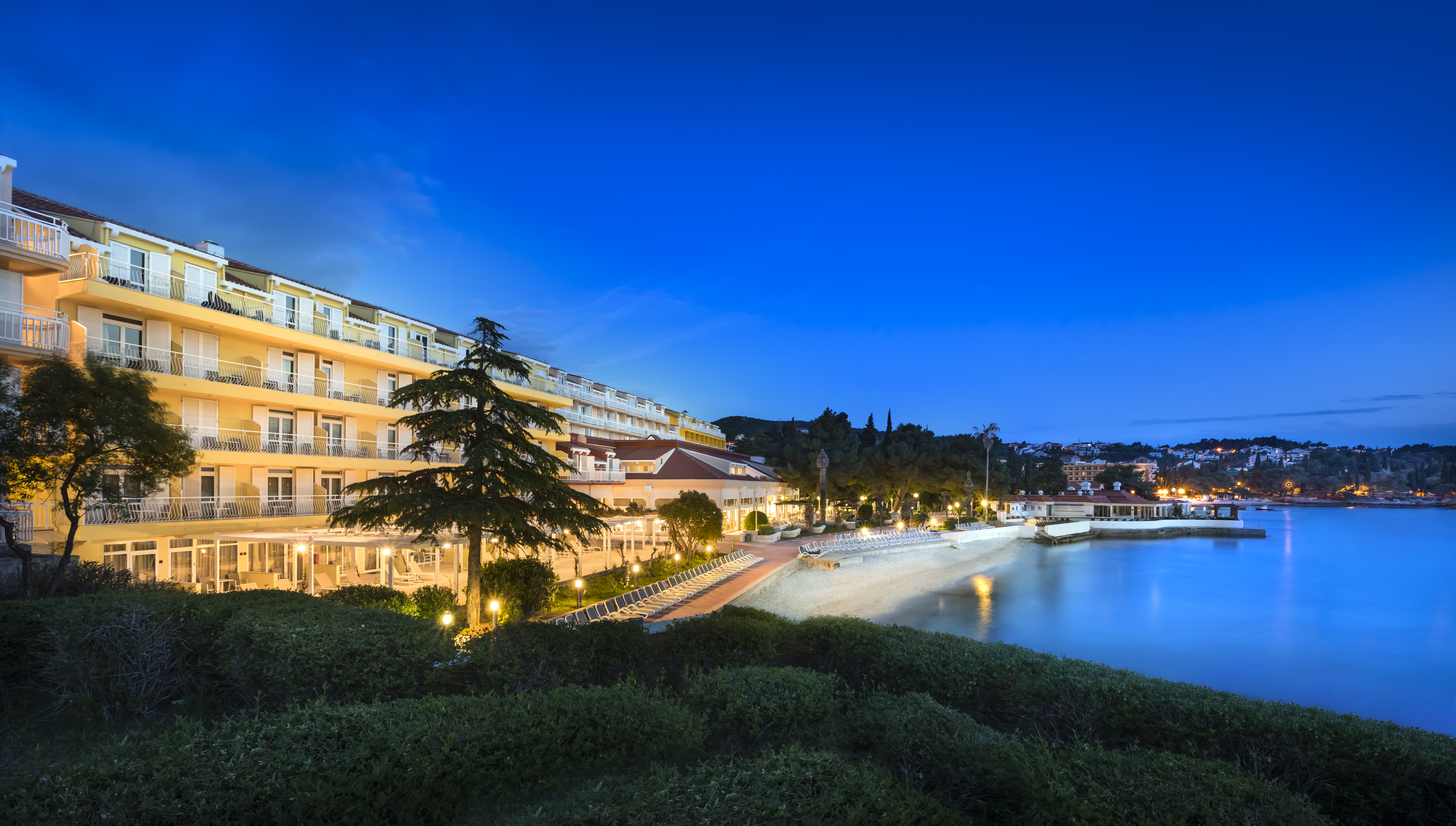 This hotel is situated directly on the pebbly beach of Cavtat, around 1. 2 km from the town centre. A bank, post office, mini-market and jewellery shop can all be found in 1 km. There is a bus stop just 100 m from the hotel while the airport is at 5 km away. This fully air-conditioned beach resort offers a total of 312 spacious rooms, equipped with cable TV, minibar, safe, desk and bathroom with shower. There is a café, bar, and TV lounge where guests can enjoy some quiet relaxation, and a restaurant provides on-site dining. Younger visitors can take advantage of the two play areas and the children's swimming pool which is incorporated in the adult pool. Other recreational options include table tennis, aerobics and as well as various water sports.