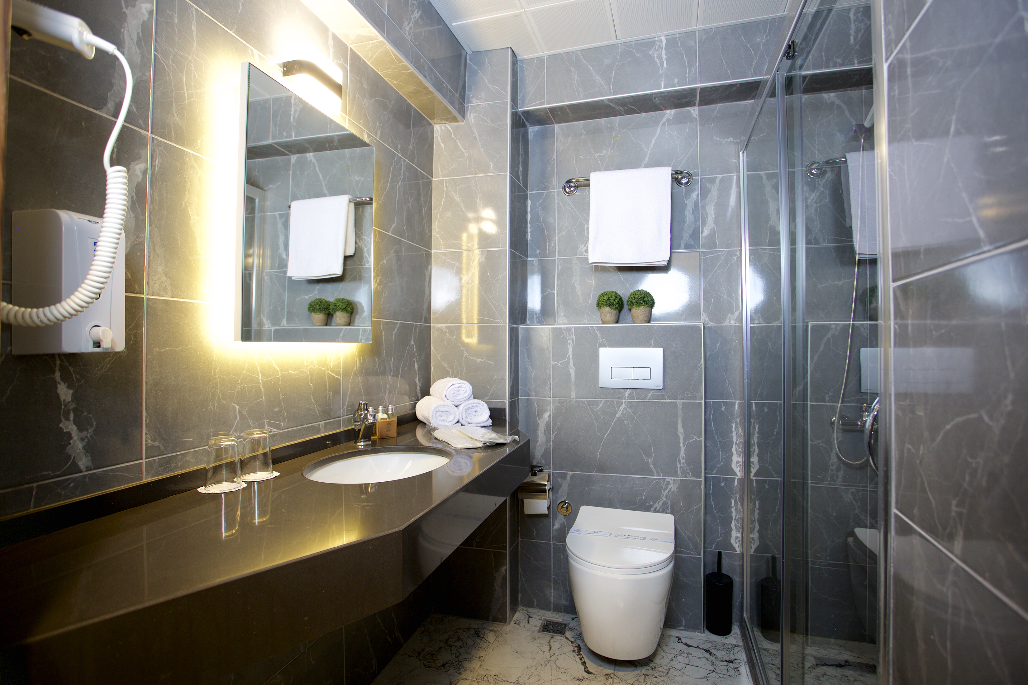 This family-friendly, city hotel is located in the heart of the historical district of Aksaray. Museums, historical buildings such as Hagia Sophia and Topkapi Palace are within a 15-minute walk. Atatürk International Airport is 15 kms from the hotel. This air-conditioned hotel was fully renovated in 2006 and offers 55 guest rooms, a restaurant-bar, a hotel lobby with a 24-hour check-in service, a hotel safe, a currency exchange service, lift access, WLAN Internet access, and 24-hour room service and a laundry service. All units are en-suite and contain a direct dial telephone, satellite TV and a hairdryer. The rooms have individually regulated air-conditioning units, central heating and balconies /terraces. The restaurant serves a breakfast buffet.