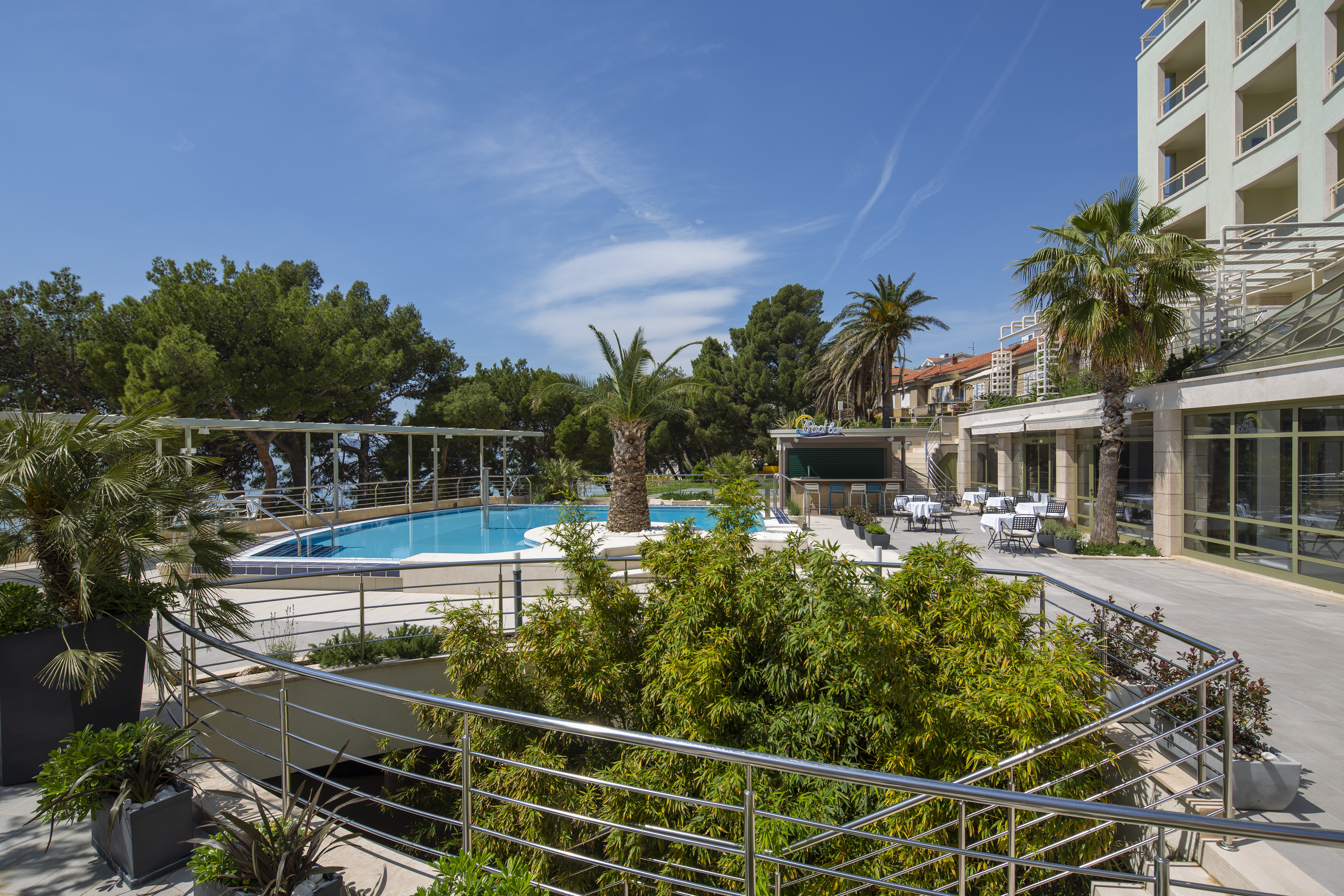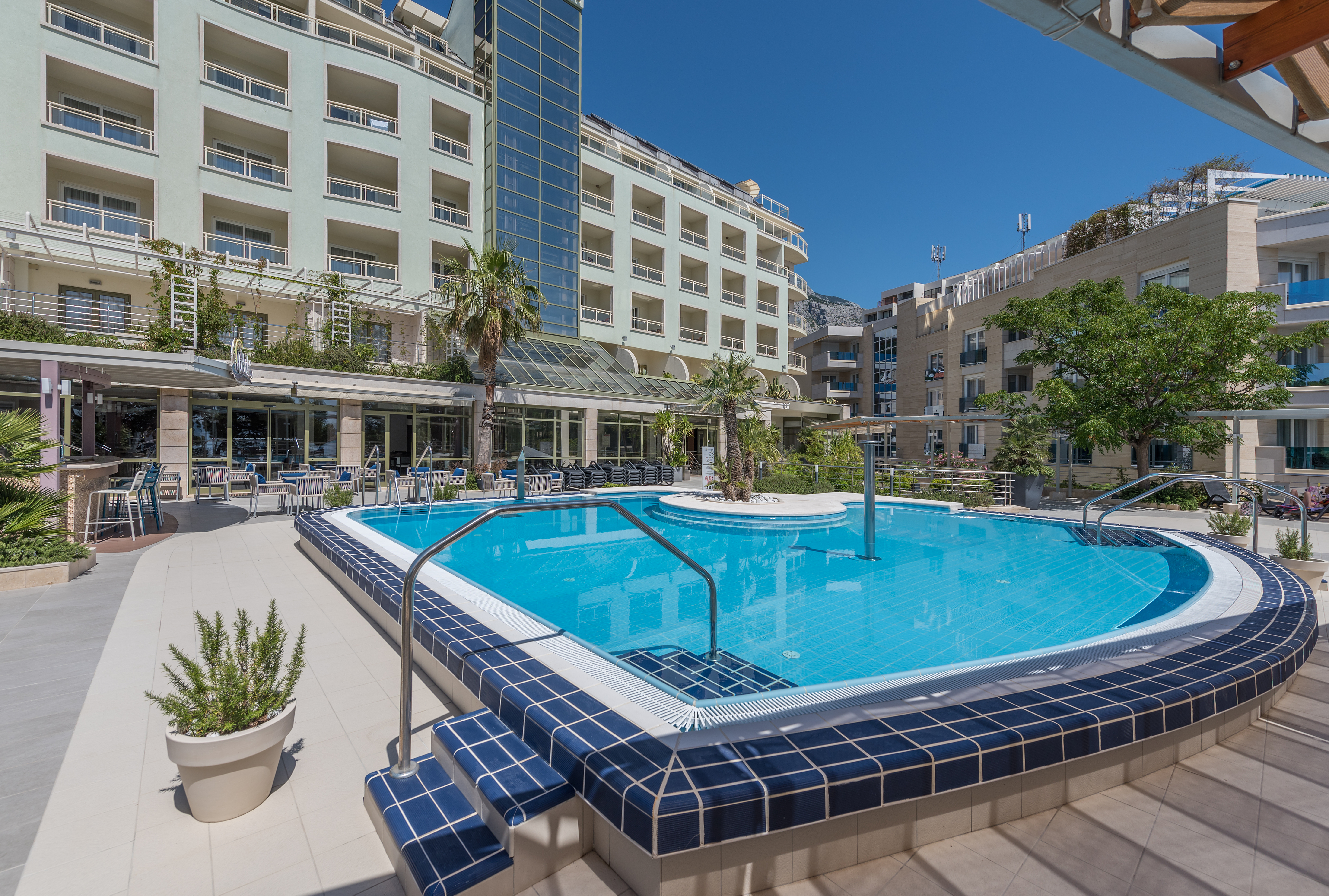 Situated in Dalmatia on the beautiful Adriatic coast, this modern welcoming hotel is an ideal place to get away from it all and relax. The premises are located in the historic town of Makarska, and guests can stroll through the narrow streets and enjoy its bars and restaurants, and there is a beautiful beach on the hotel's doorstep. The guest accommodation comprises double and triple rooms, as well as apartments, all featuring en-suite bathrooms, underfloor heating, air-conditioning, free Wi-Fi and satellite TV. Guests can enjoy delicious Dalmatian cooking at the on-site restaurant, and there is a bar where guests can unwind and socialise with a drink. Other amenities include a swimming pool where guests can sunbathe and relax, a fitness room for guests who want to stay in shape, and a spa where guests can pamper themselves with a range of treatments available.