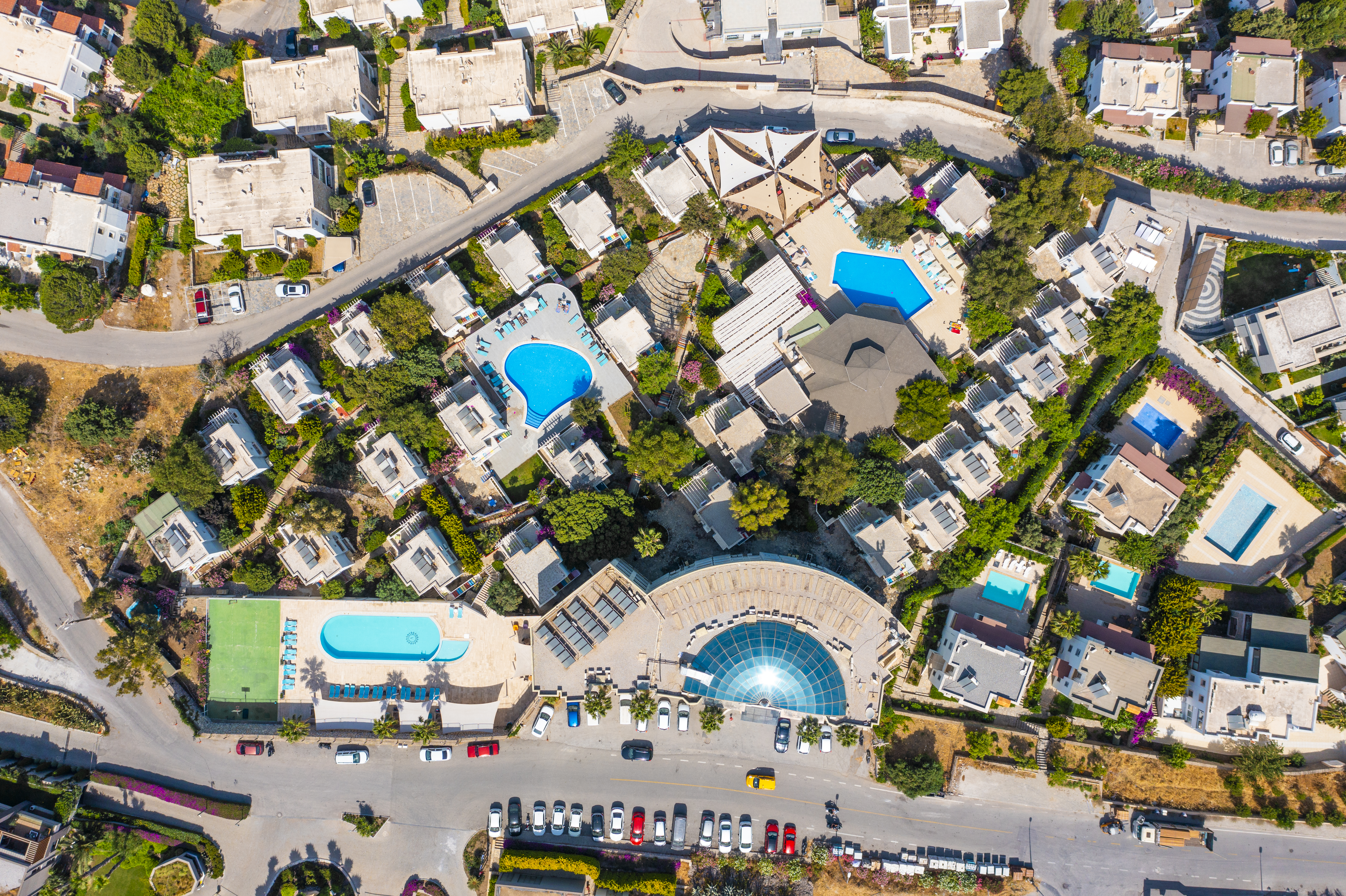 Overlooking the Aegean Sea, the Riva Bodrum Resort is situated in an elevated position on a hillside between Bitez Bay and Gümbet Bay. The nearest beach is 600 metres away. The city centre of Bodrum with its famous castle housing the Museum for Underwater Archaeology as well as shopping venues and vibrant nightlife is within 4 km. Rooms in the hotel are placed either in a main building with a lovely lobby or low-rise villa-style blocks surrounded by garden; all of the rooms enjoy sea views. Features of the hotel include three large outdoor pools, a sea view restaurant, two pool bars, a snack bar, a mini-market and cinevision. It has a wellness area, sauna and Turkish bath. A tranquil place with nice views, yet within easy reach of the beach.