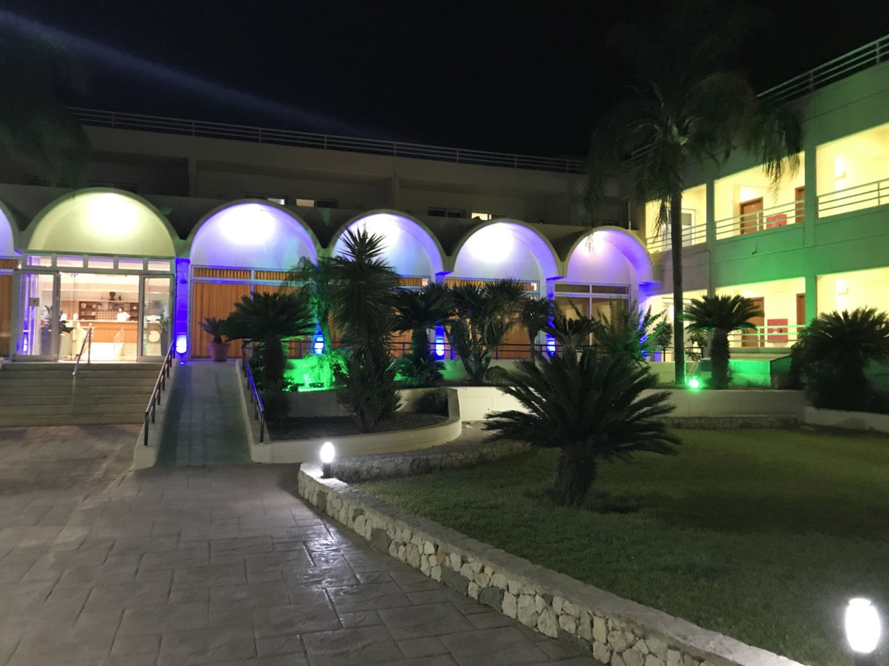 2 minutes away from the hotel there is a familiar, pleasant atmosphere enhanced by: • a spacious playground of 180 sm • a restaurant with a variety of traditional, fresh and delicious couzine, including also meat and fish, that operates from the morning till 12 o'clock in the evening with capacity of 250 people • A cocktail bar with entertaining and vivid music until late at night with capacity of 50 people. • A supermarket filled with plenty rhodian souvenirs and snacks that operates from 8:00 am till 23:00 pm. All the above are part of a brand new area, coloured by blue and white design accompanied by a fountain and small arches. Free parking is included.