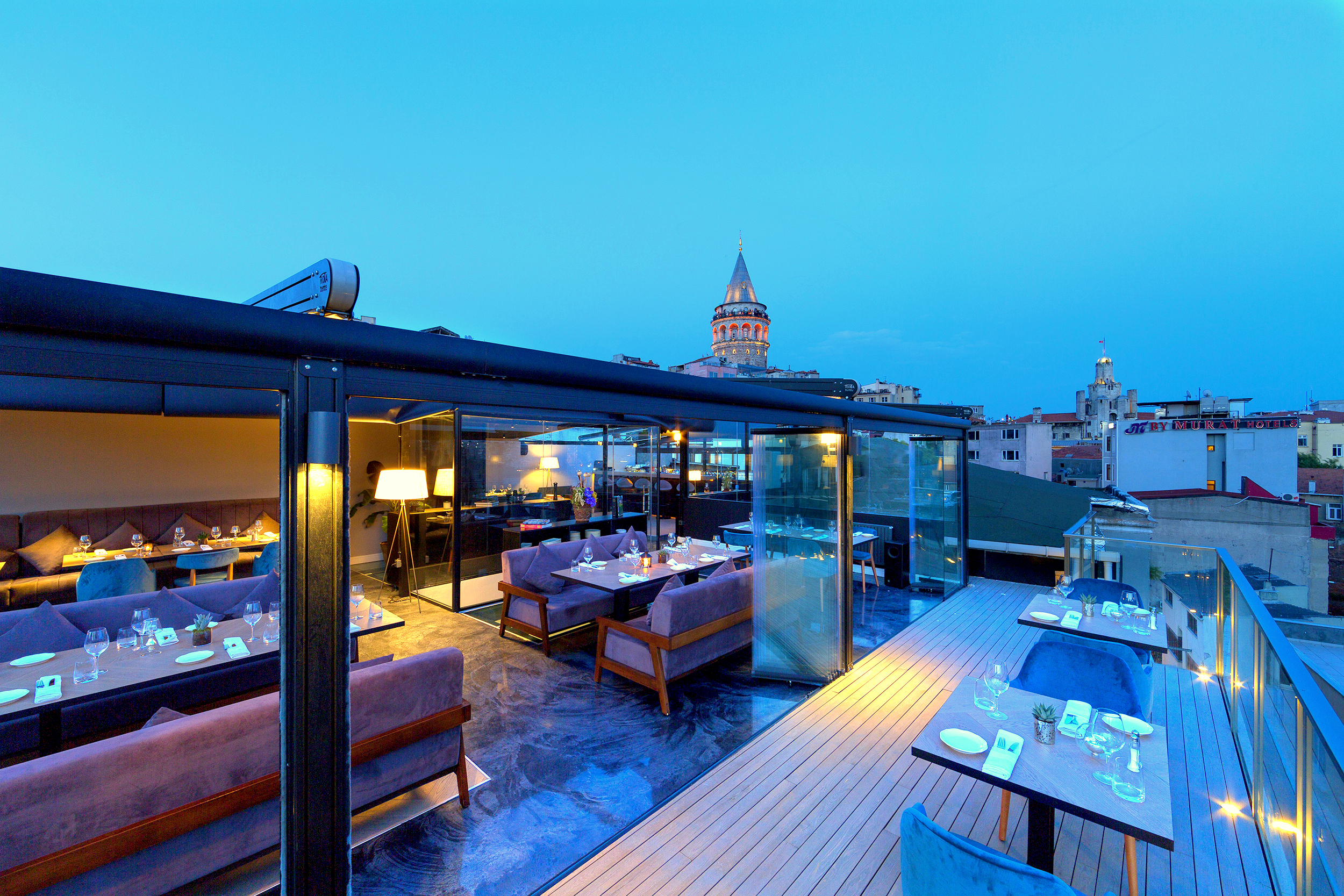 Zula Galata Rooftop Restaurant and Bar serves Turkish and international cuisine where you can have lunch, dinner and have drinks throughout the day while enjoying the views over Galata Tower, Goldern Horn, Hagia Sophia, Blue Mosque and old city Istanbul. The restaurant offers special local wines as well as the international ones. In the morning guests can enjoy an open buffet breakfast which has both turkish and international varieties like pancakes, turkish pastry, sausages, different kinds of cheese, jams, fruits, cereal, omlette and vegetables at the rooftop.