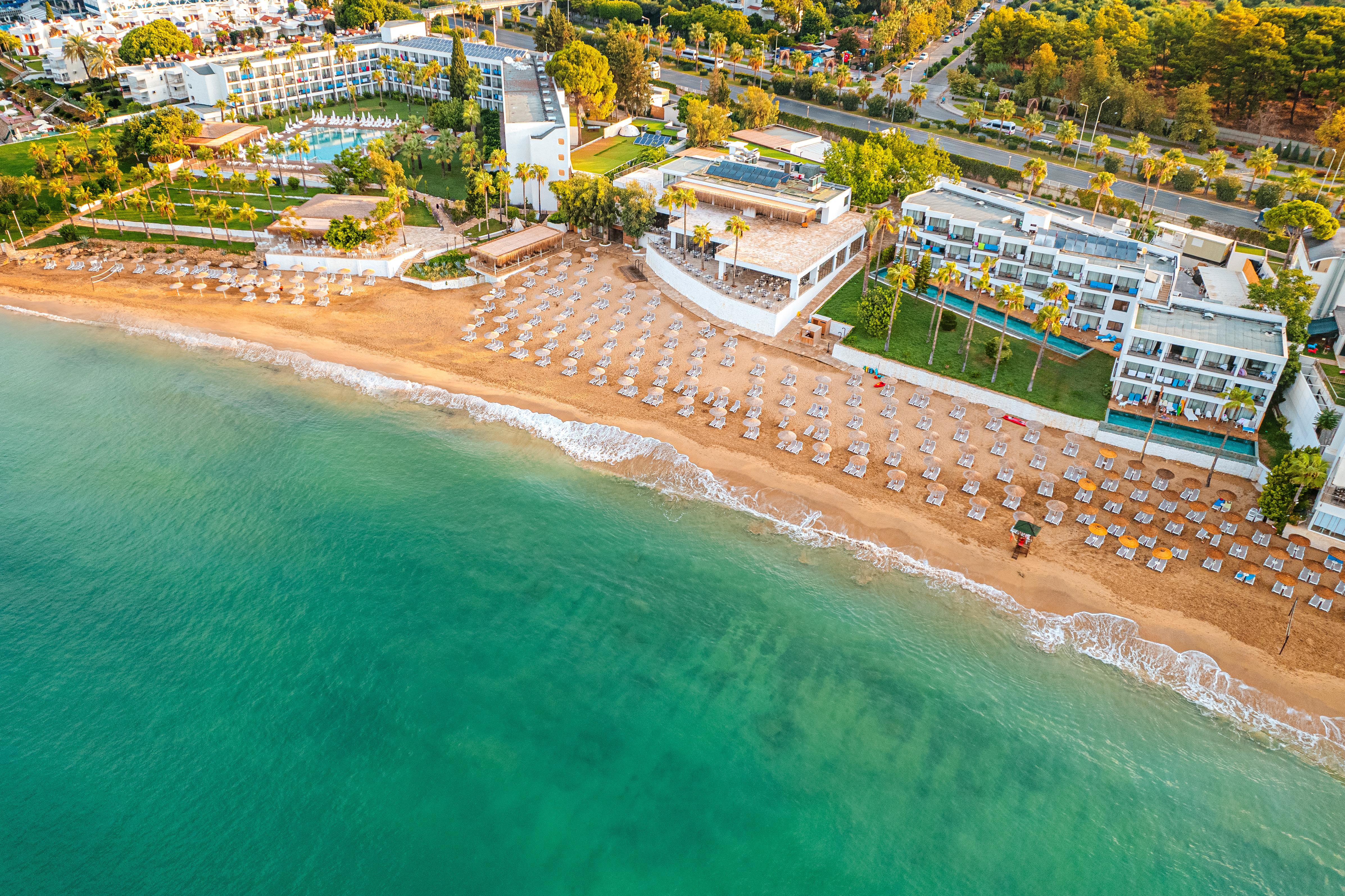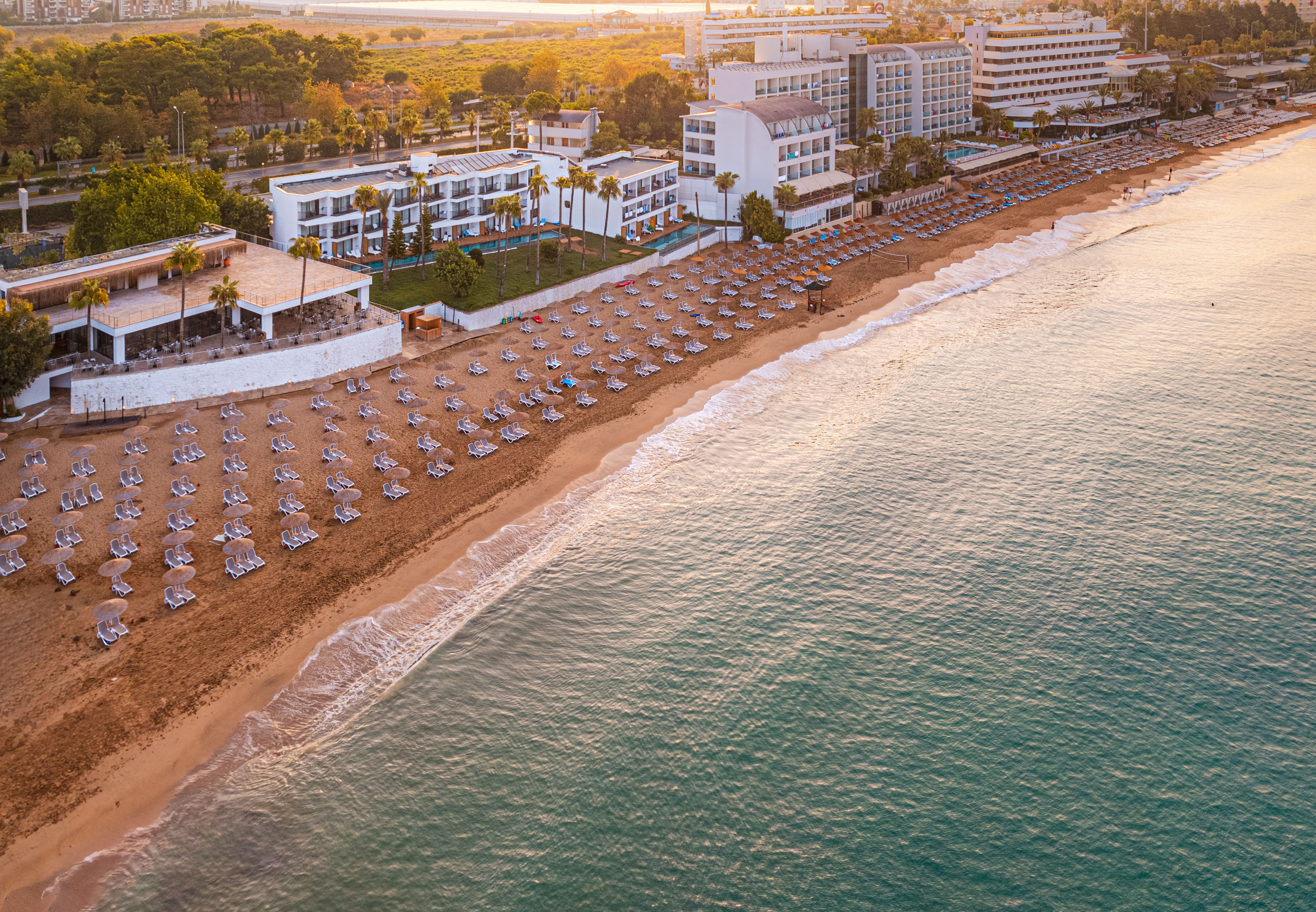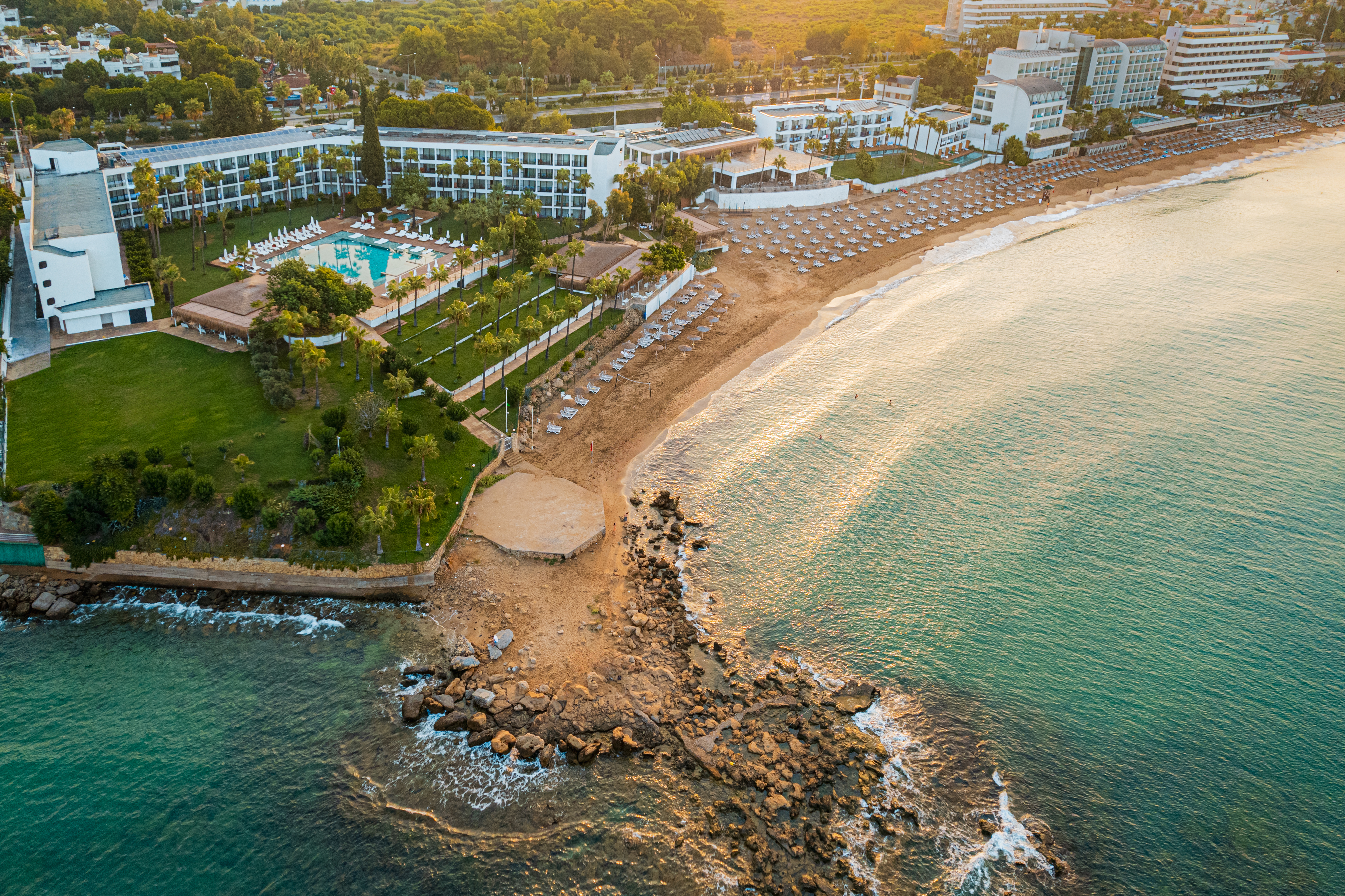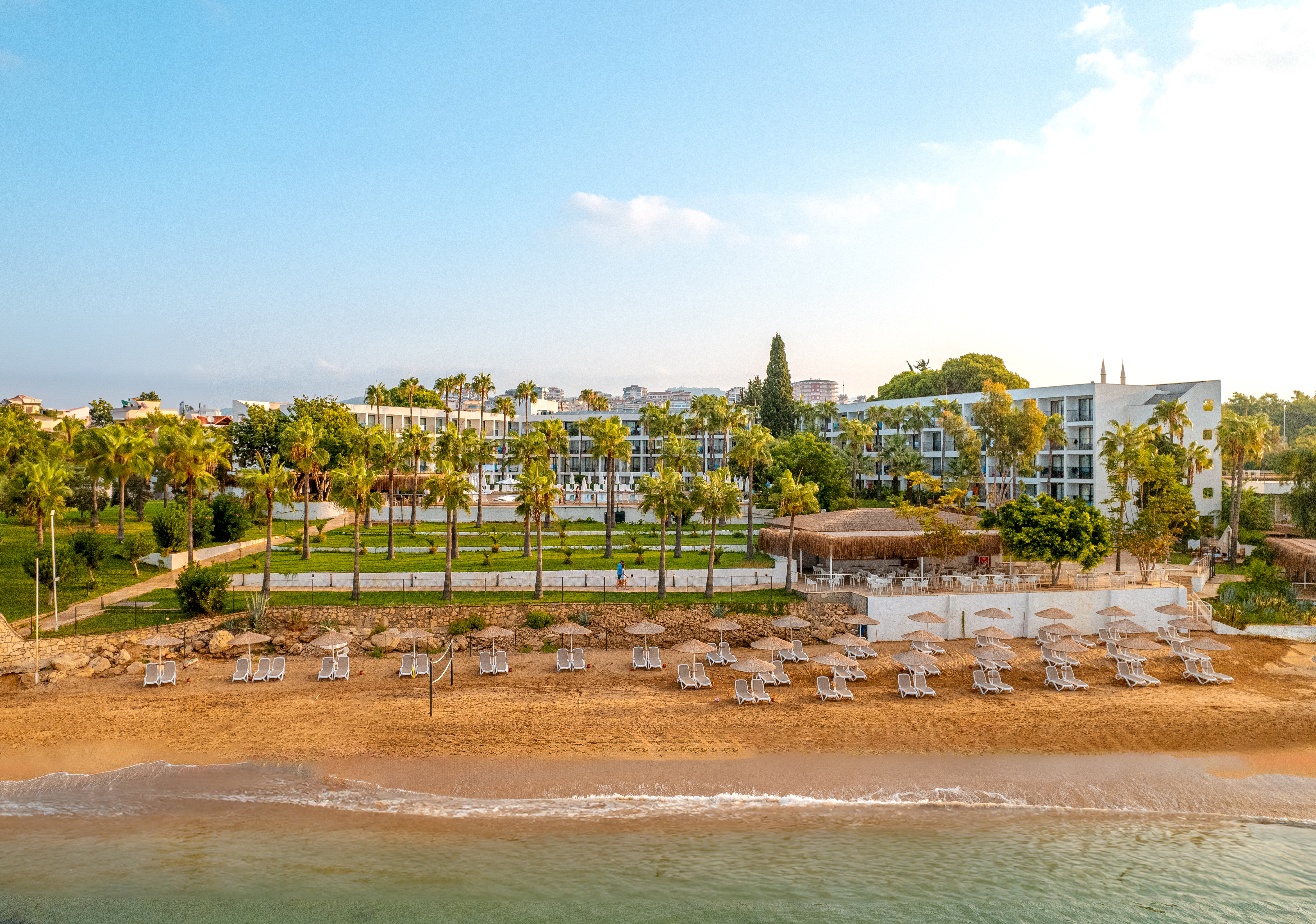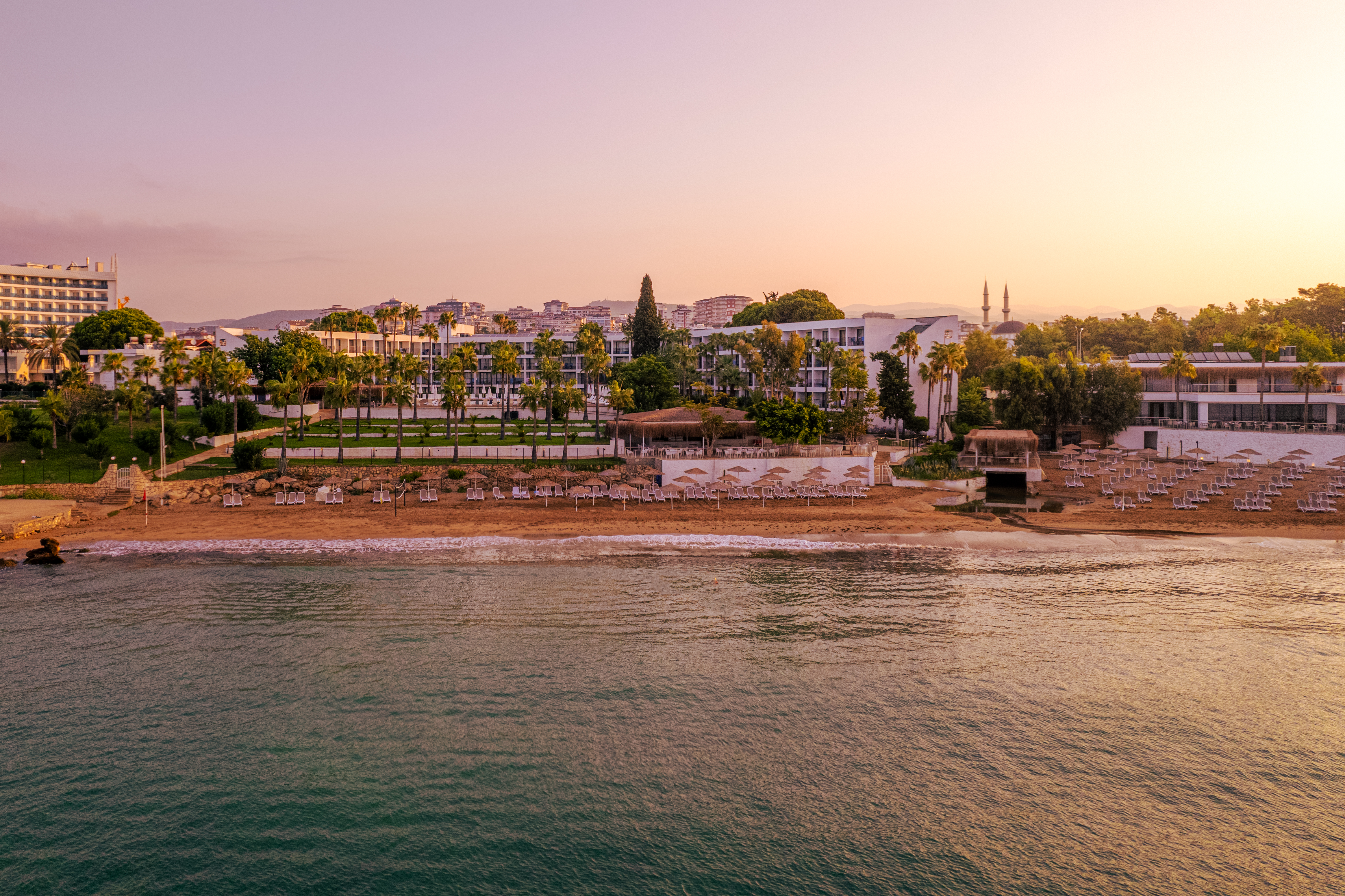 This hotel in Alanya is set in lush gardens and has a private beach on the Mediterranean Sea. Located by a bay with a long, sandy beach which gently slopes into the sea, it is a short walk from the centre of Avsallar, where guests will find shops, restaurants, cafes and bars. There are public transportation links a few steps from the hotel, to take guests to the popular resort of Alanya with its many attractions, such as Alanya Castle and Damlatas Caves.