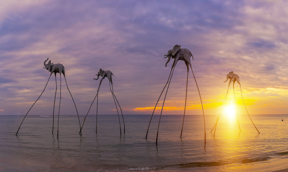 Пляж зі слонами Сальвадора Далі або Sunset Sanato: місце, де можна залипнути на красу. Мальовнича водна гладь і незвичайні артінсталяції: сім’я велетів, елегантні медузи й дельфіни. Не вистачає лише вас і спалаху камери.