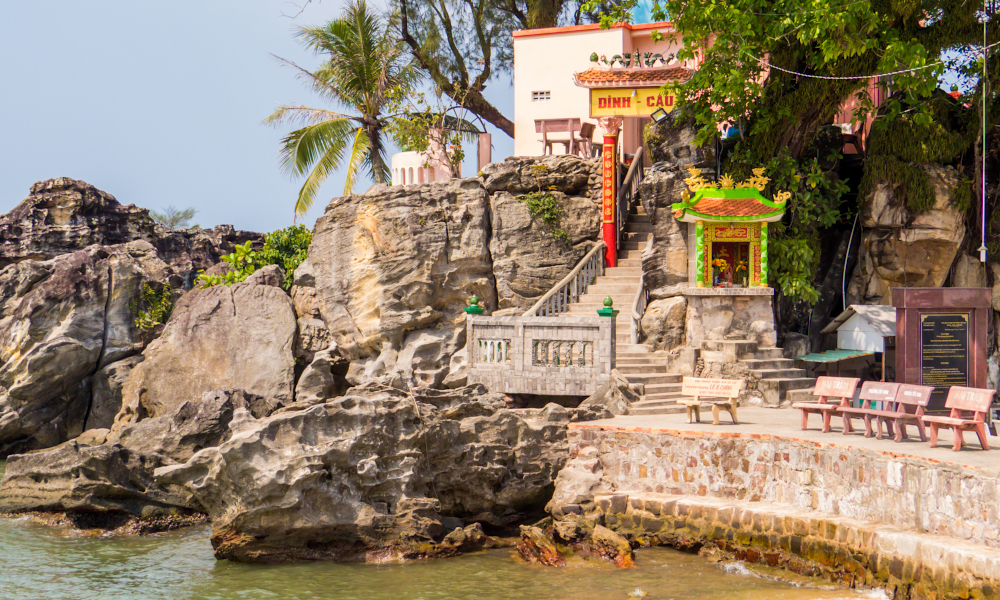 - Скеля Дінь Кау: химерний природний комплекс і храм, оповитий трагічною легендою — колись на цьому місці гинули рибалки й мореплавці через сильні шторми, але богиня звела тут узгір’я, захистивши місцевих. Ідеальне місце, щоб спіймати моменти, які вразять аудиторію. А ще, поклонитися володарці моря Леді Нгок Нуонг Нуонг та її синам — вважається, що це приносить удачу.P. S. Увечері тут відчиняється нічний ринок. Обов’язково завітайте, щоб насолодитися атмосферою і зробити кілька цікавих кадрів.