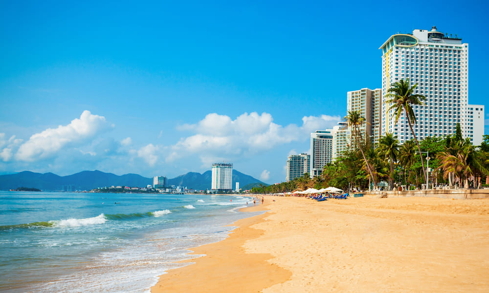 Узбережжя Нячанга — це бухта приблизно 7 км із прекрасним жовтим піском. Пляжі частіше муніципальні, тому біч-сет уже за додаткову плату. До речі, захід у море плавний, комфортний для дітей.