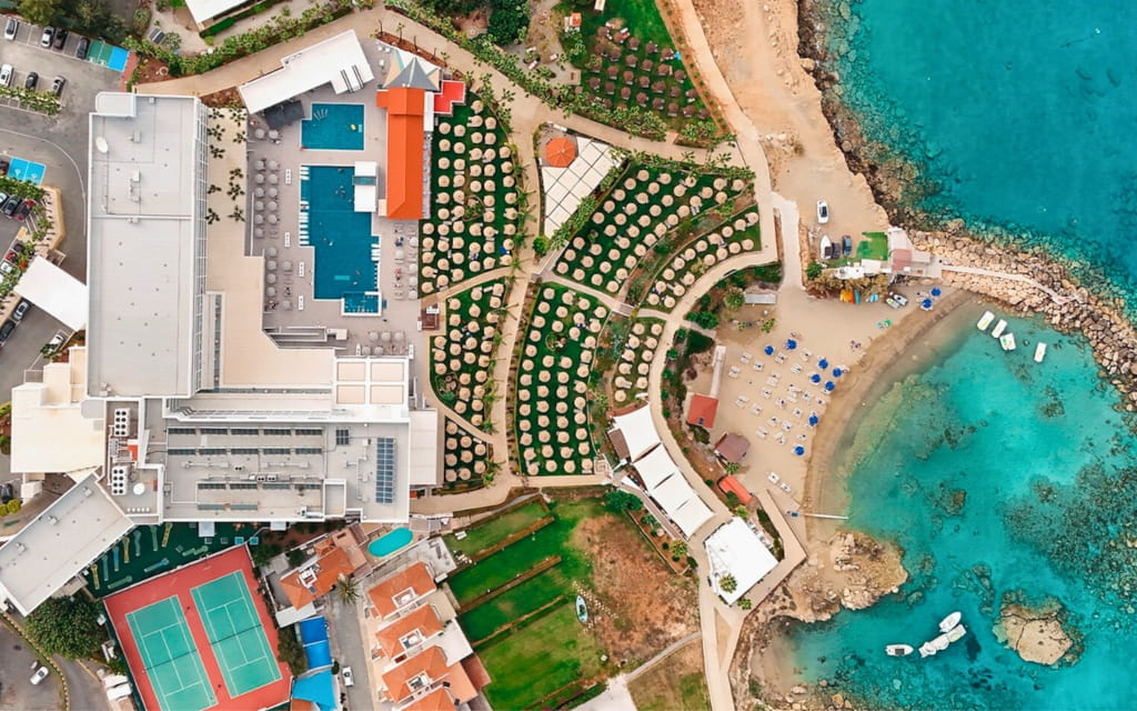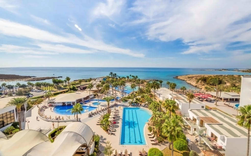 Фішка: ідеальне місце для сімей, які цінують комфорт і локацію. Готель прямо на узбережжі з піщаним пляжем, оточений зеленими садами. День можна провести жваво, а ввечері — вирушити на променад до центру Протараса, що зовсім поруч (15 хв пішки). Дорослим — релакс у спа, малечі — веселощі в дитячому клубі. |