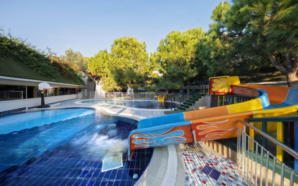 Немає періоду бронювання. Вікно проживання: 01.04.2026 — 31.10.2026. Фішка: У готелі є басейн з 5 водними гірками, а ще — дитяча зона з інтерактивним ігровим простором, де маленькі гості можуть розважатися в тіні дерев. Працює клуб “Каллі”, є послуги няні, а територією їздять мініпоїзди. |