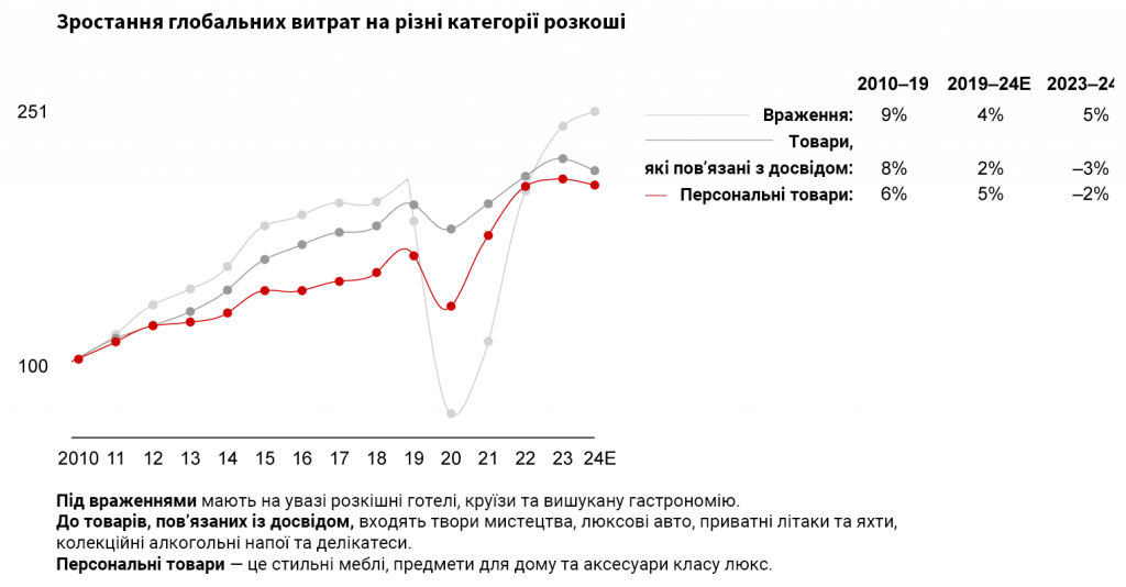- Сфера розкішної гостинності у 2024 зросла на 4%.1