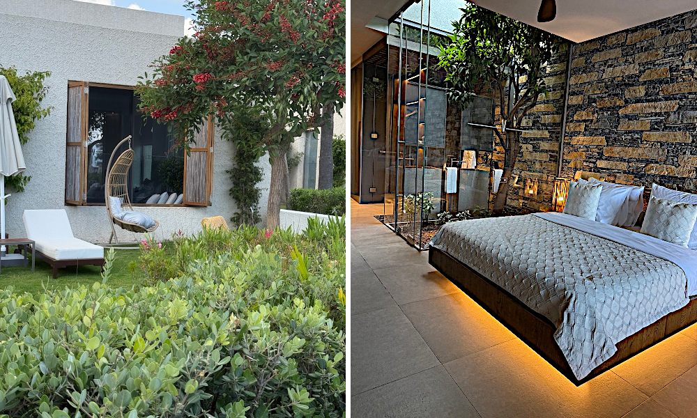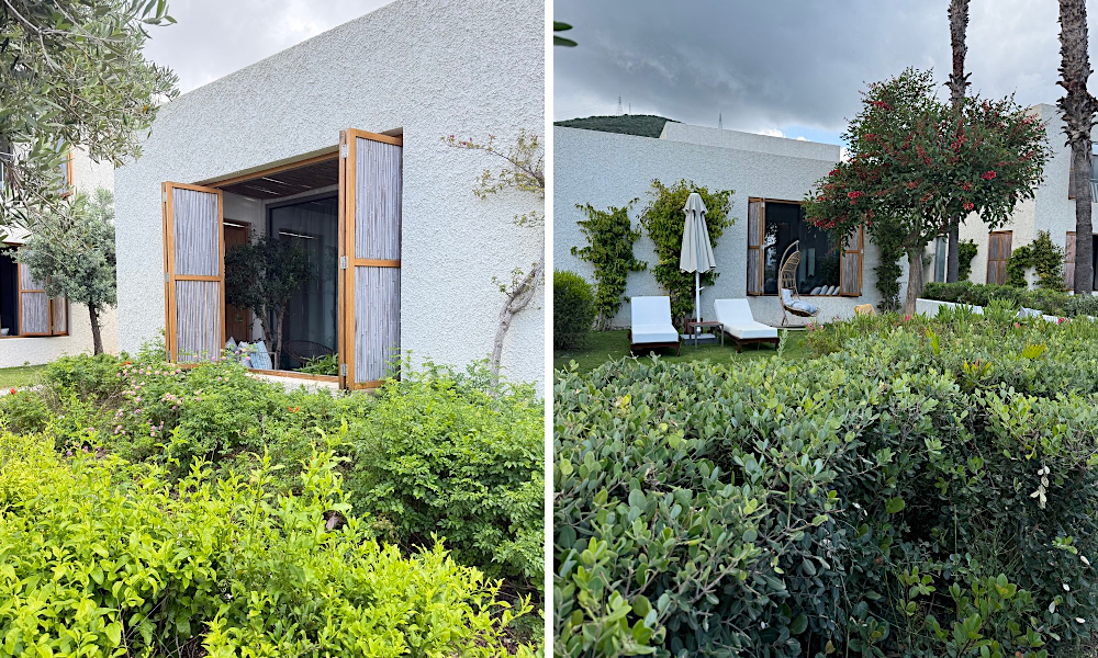 Розташування будівель тут припасоване до ландшафту, немов квартал старого середземноморського містечка: групки споруд, вузькі вулички, вимощені каменем подвір’я. Простори плавно переходять один в інший, як це і буває у справжній природі, а слова olive7 і garden7 у типах номерів — невипадкові. Пишні дерева ростуть під їхніми стінами, а деколи і всередині!