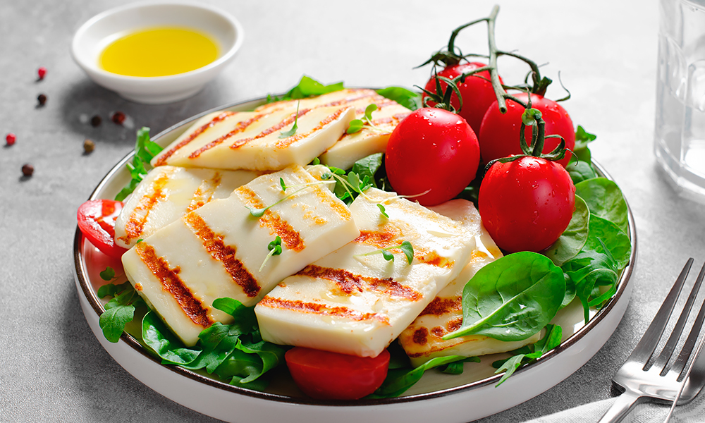 Halloumi — напівтвердий сир з овечого чи козячого молока з листям м’яти як консервантом. Його часто запікають на грилі. Цей сир у 2021 отримав статус ЄС PDO (Protected Designation of Origin).3